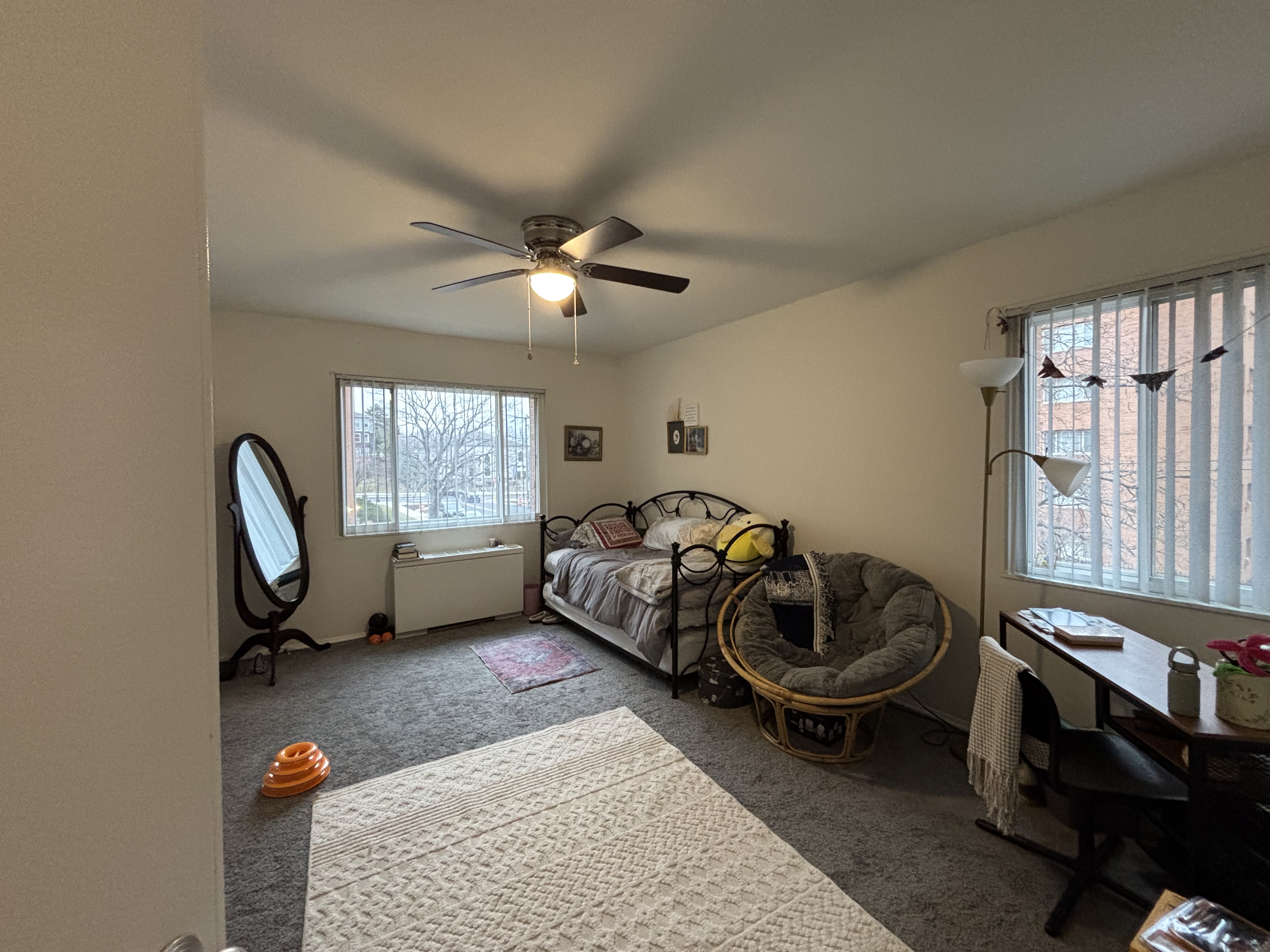 The room is gorgeous!!! In fact, itās almost a whole floor, which includes private bath, spacious closet, double-windows, and ceiling fan and light. In addition there is a semi-private workout/living room area and an open-air balcony at $1,250/month. The living room contains is an Apple TV and armchairs. The bedroom is furnished with a queen bed and table. Included in the rent is high-speed wifi, parking, storage, common kitchen items, and a monthly professional cleaning.