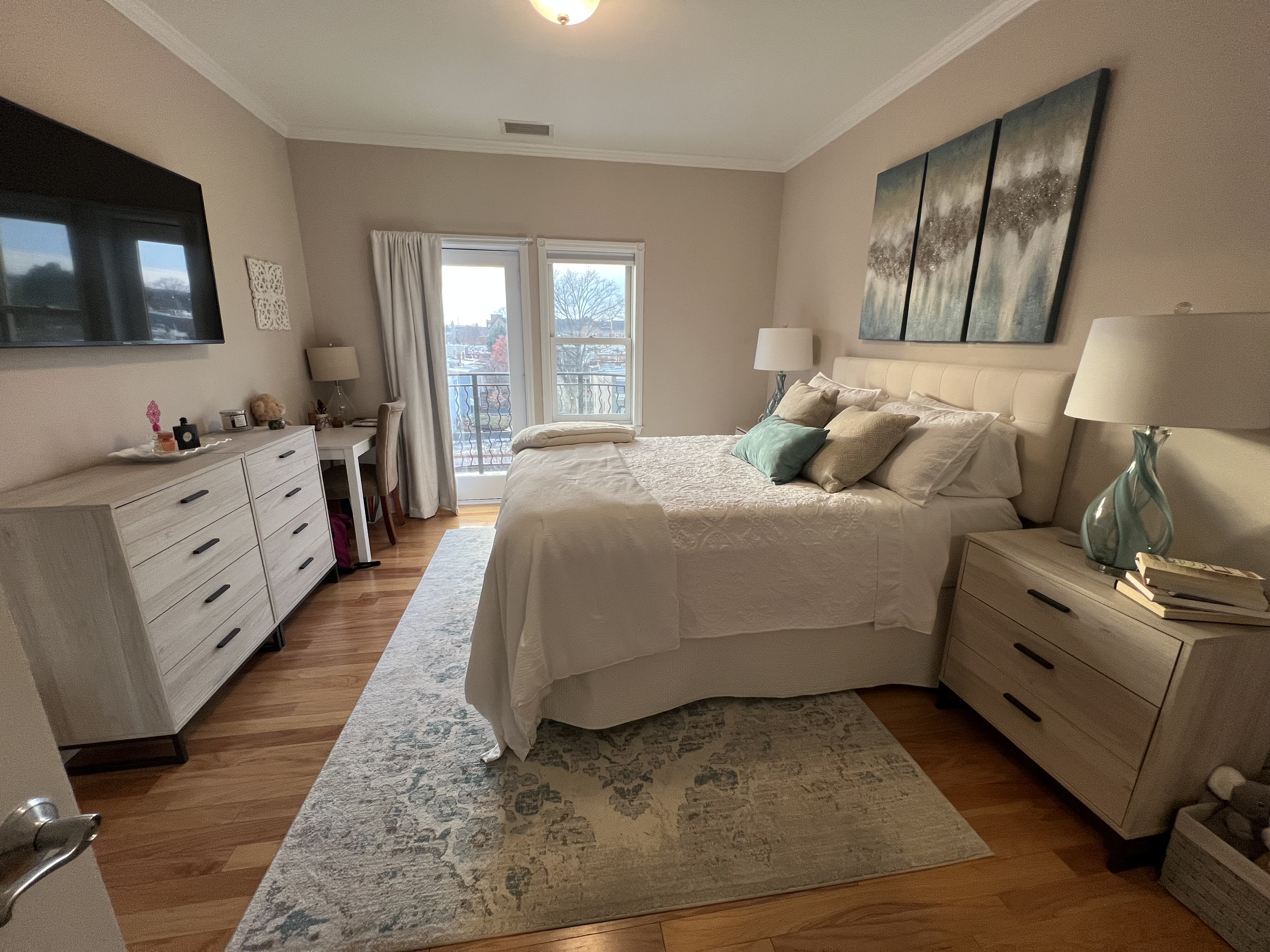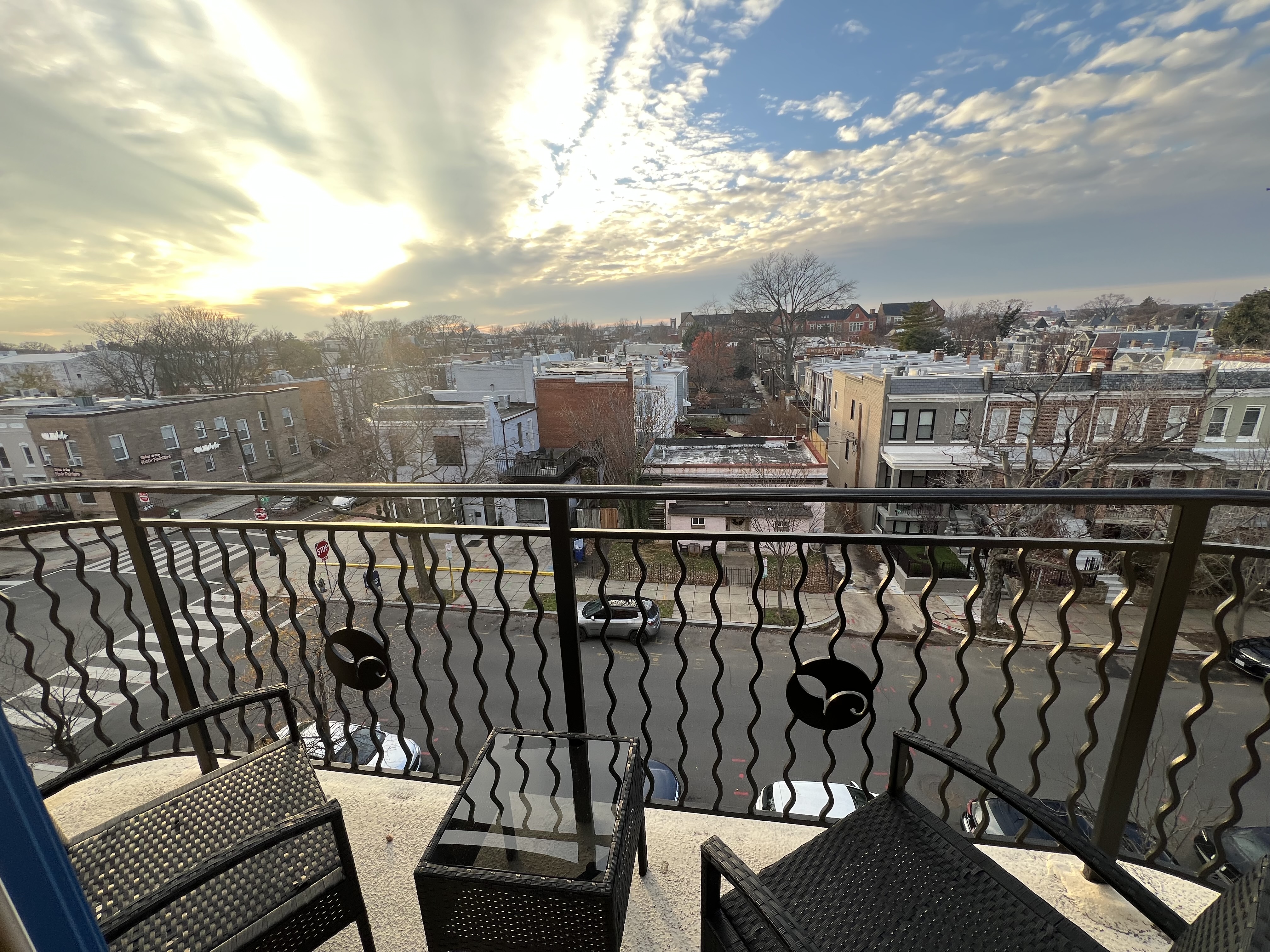 This spacious 935 sq ft condo is a penthouse unit right off Lincoln Park with two balconies, hardwood floors, lots of natural light, large windows with a direct view of the Capitol, tall ceilings, a walk-in closet, and crown molding.