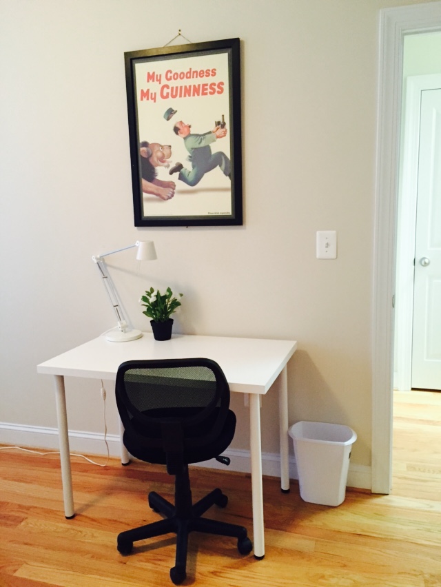 Nicely furnished large bedroom with desk, large size bed and shared bath with one other person. The kitchen is fully equipped. There is a spacious living room, dining room, back porch, washer and dryer, and an optional parking space for $50.