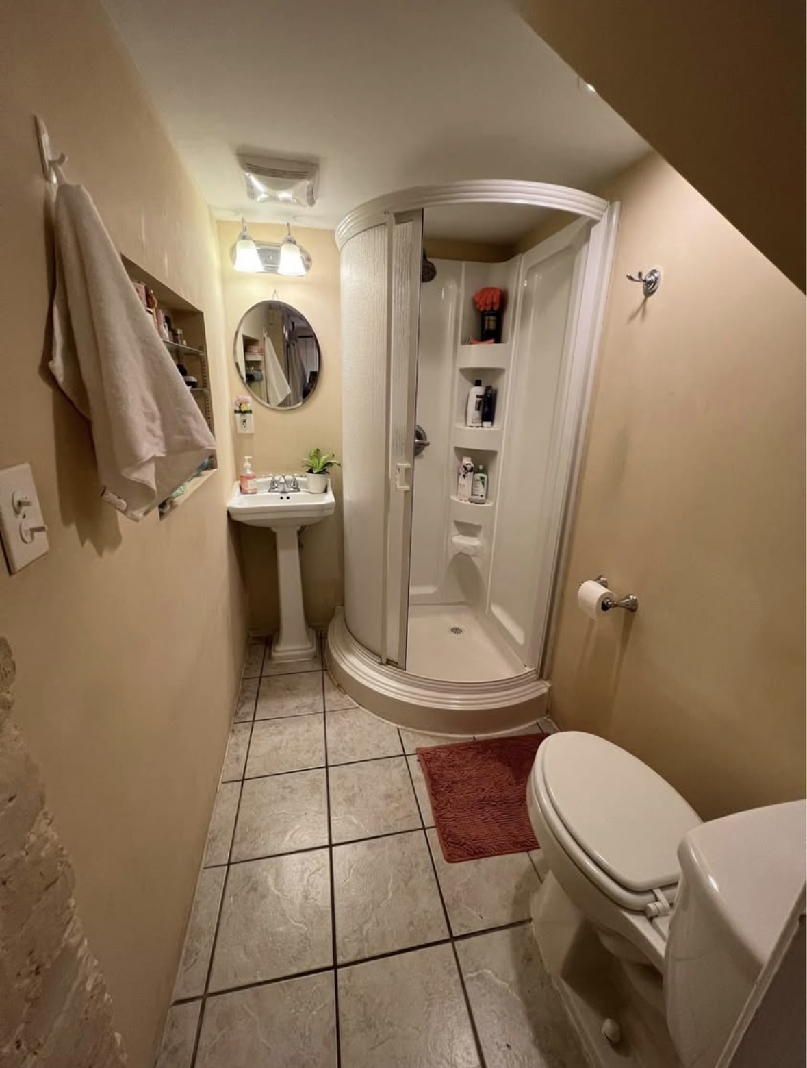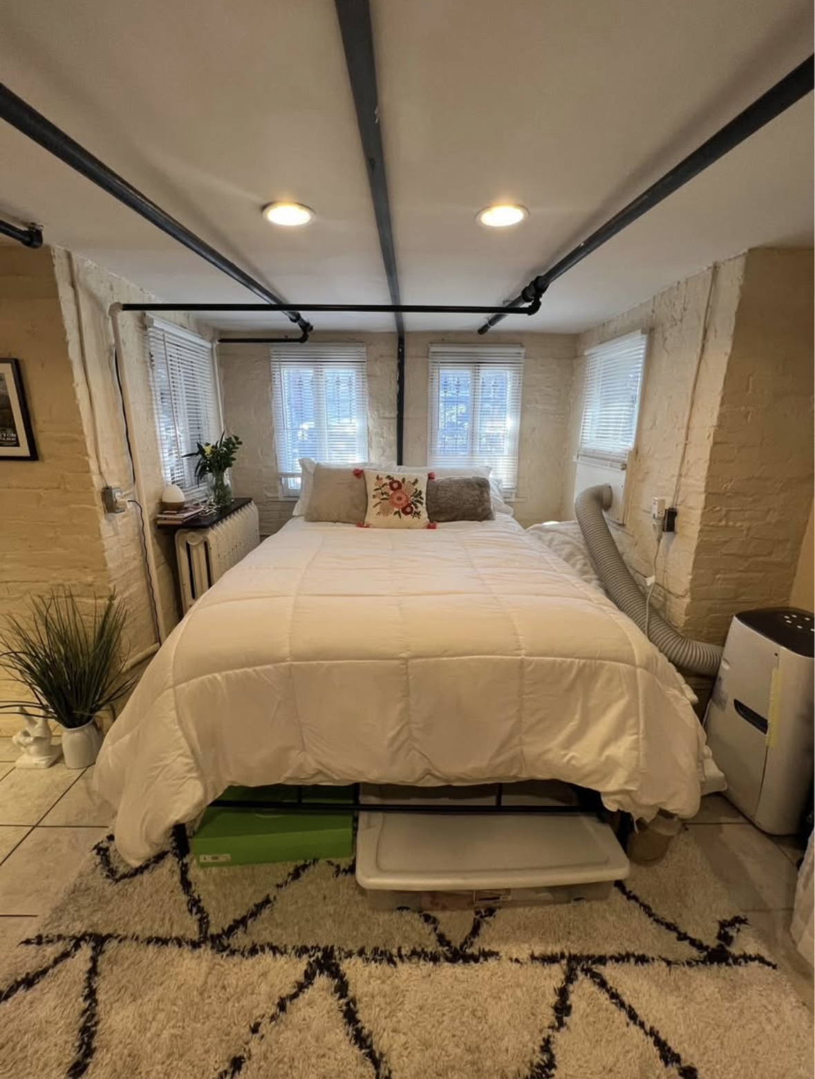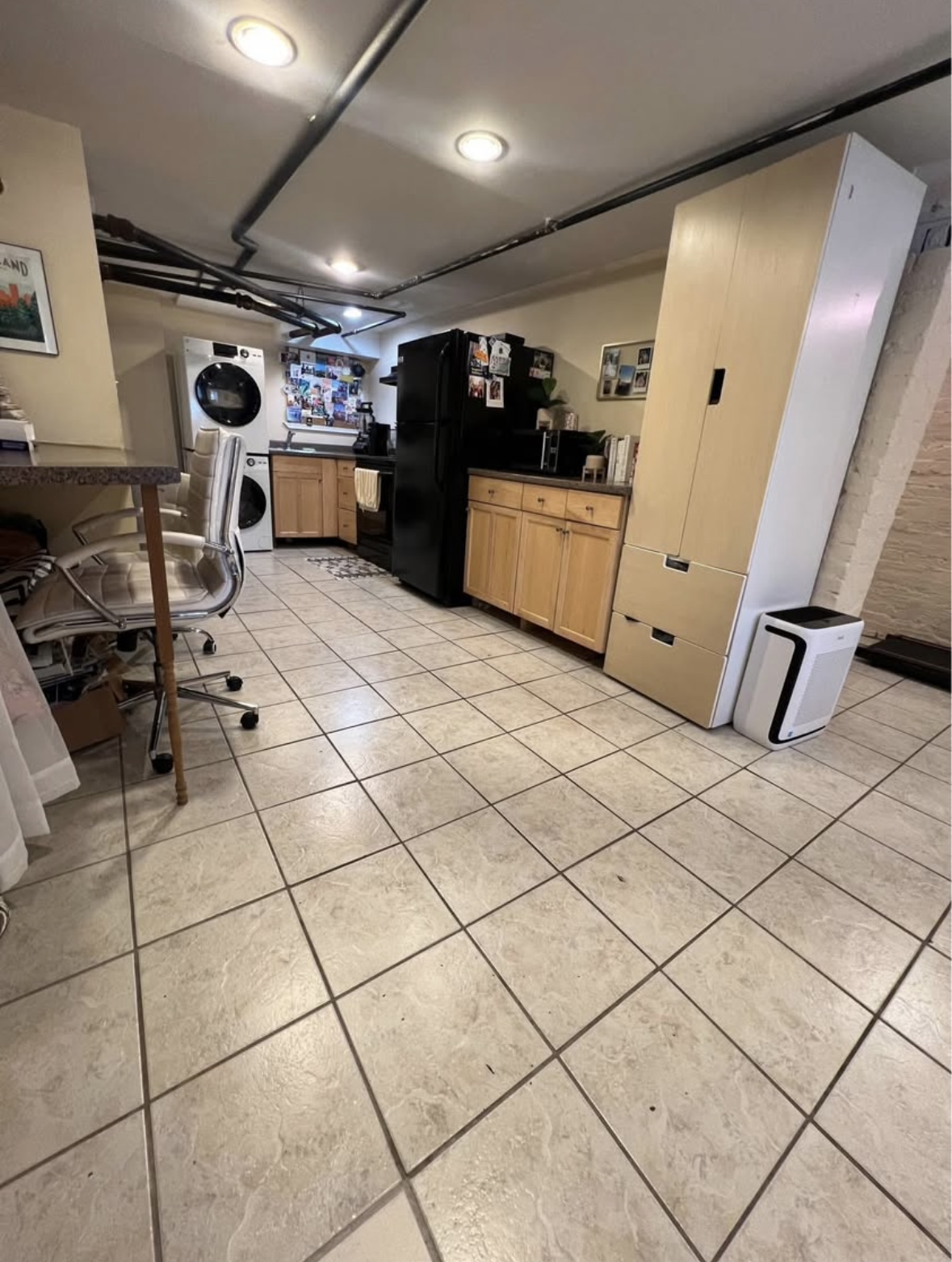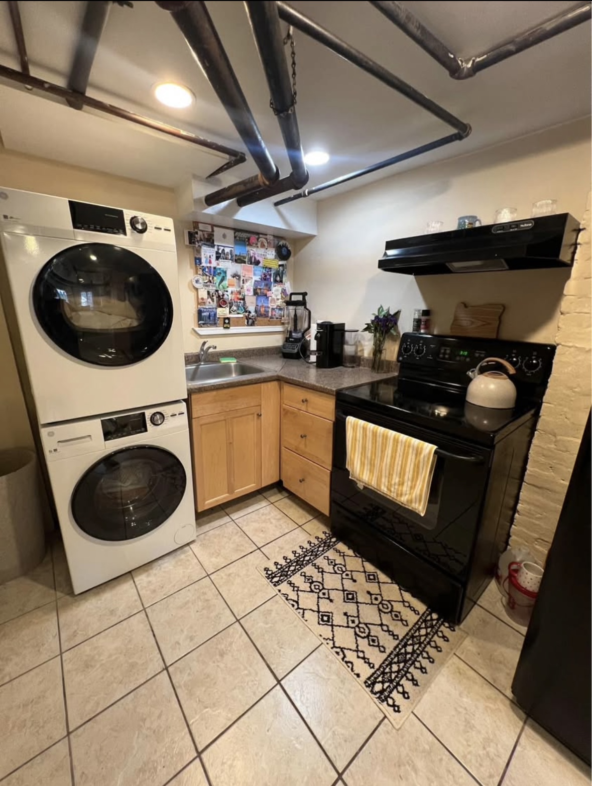 The basement is its own studio unit complete with a kitchen, bathroom, and washer/dryer. It has a front door and a back door that leads to the backyard. An indoor staircase and door leads to the main house — thus far, we’ve left it unlocked with access to the house, but we are willing to lock it off as a completely separate unit if that’s what you’re interested in.